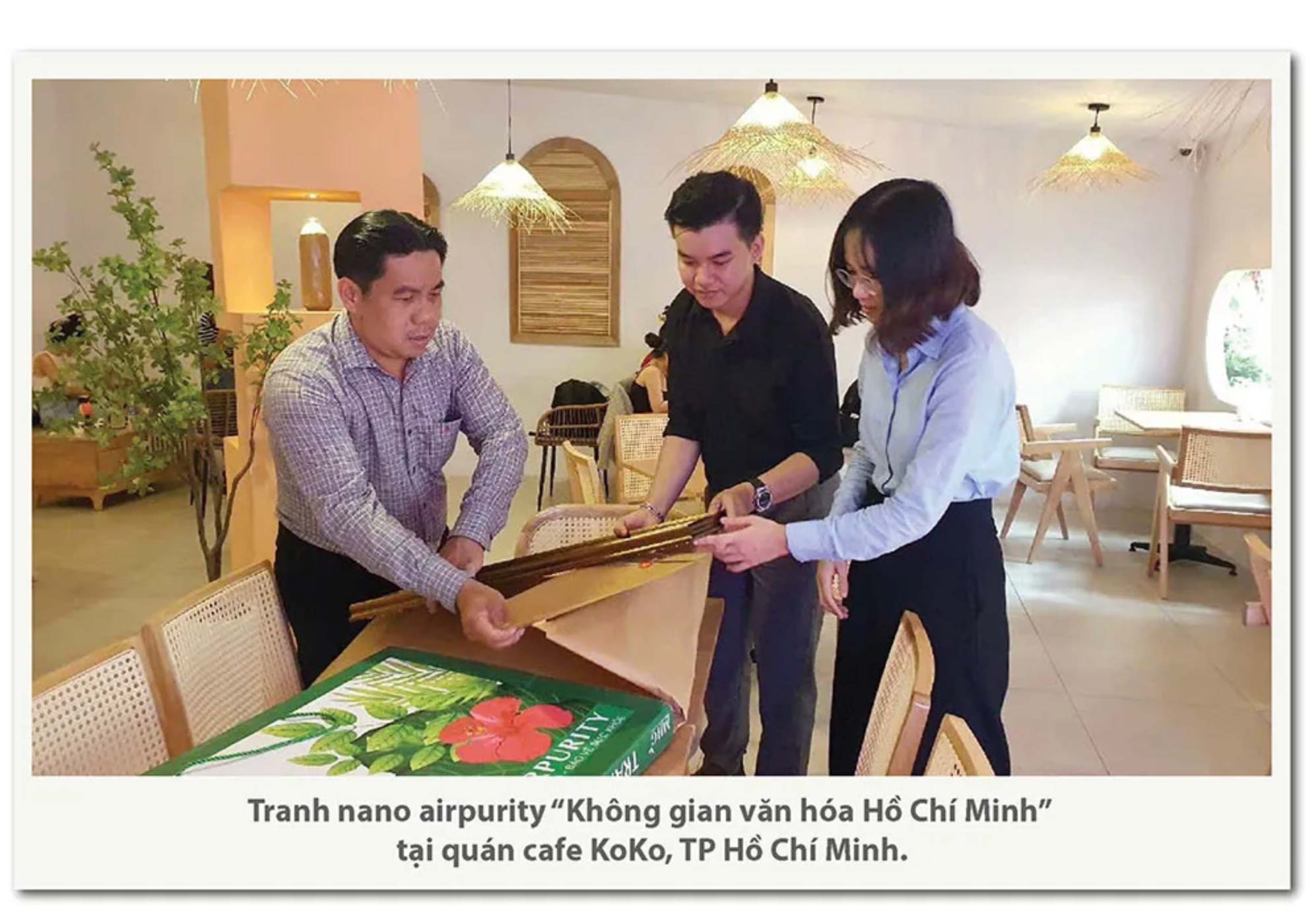 Tiêu biểu là Công ty CP Tập đoàn Mai Hoa, DN đã đầu tư phát triển dòng sản phẩm tranh lọc khí Nano Airpurity, kết hợp giữa mỹ thuật và công nghệ nano vô cơ. Sản phẩm này có khả năng phân rã bụi mịn, vi khuẩn, hợp chất hữu cơ bay hơi (VOC) – giúp thanh lọc không khí trong nhà mà không tiêu thụ điện năng hay tạo phát thải thứ cấp. Đây là một ví dụ điển hình của ứng dụng công nghệ sạch trong lĩnh vực nội thất – hướng đi phù hợp với Chiến lược phát triển bền vững của Hà Nội giai đoạn 2025 – 2030.